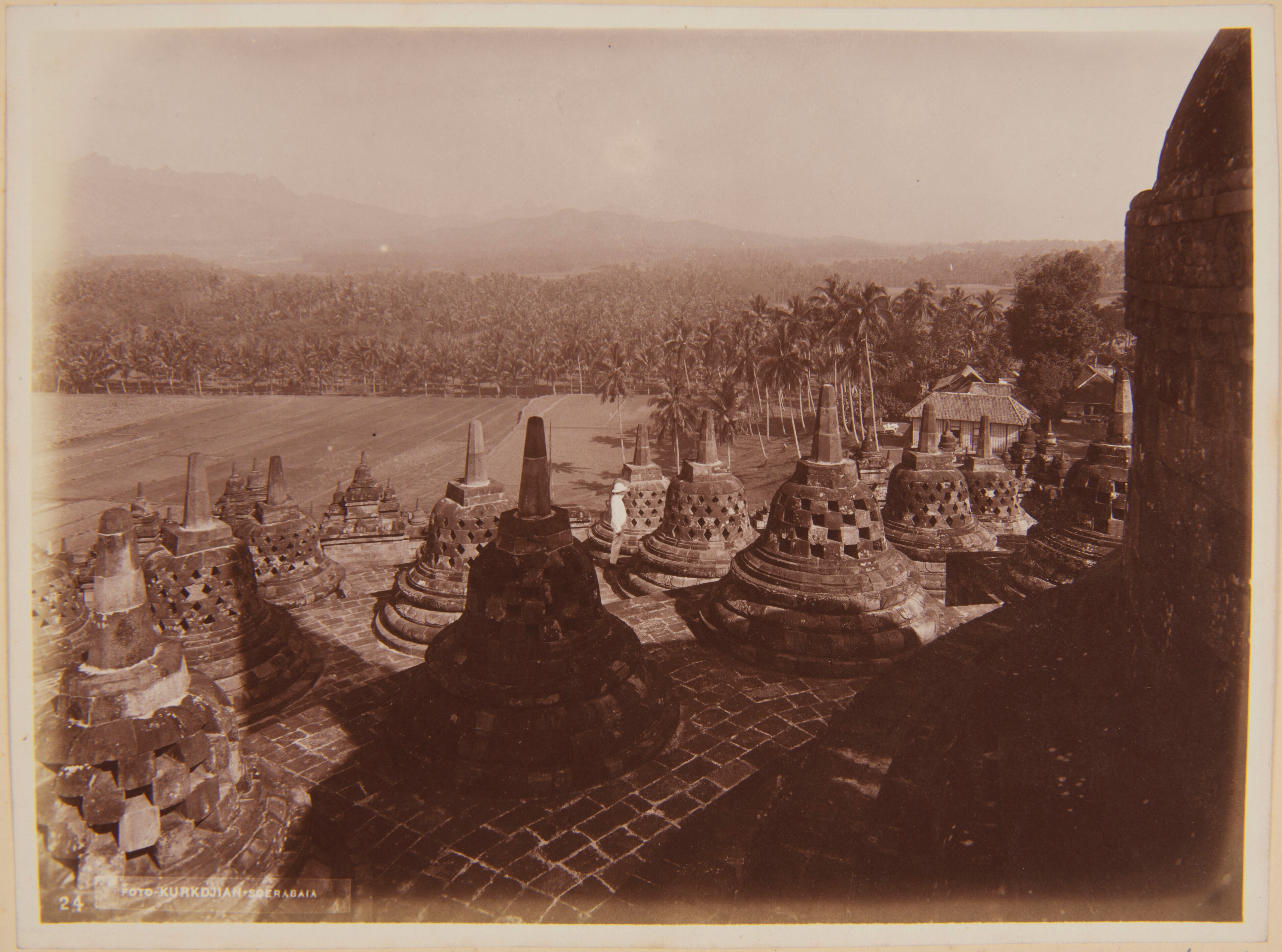 Europese man tussen de stupa's op de Borobudur