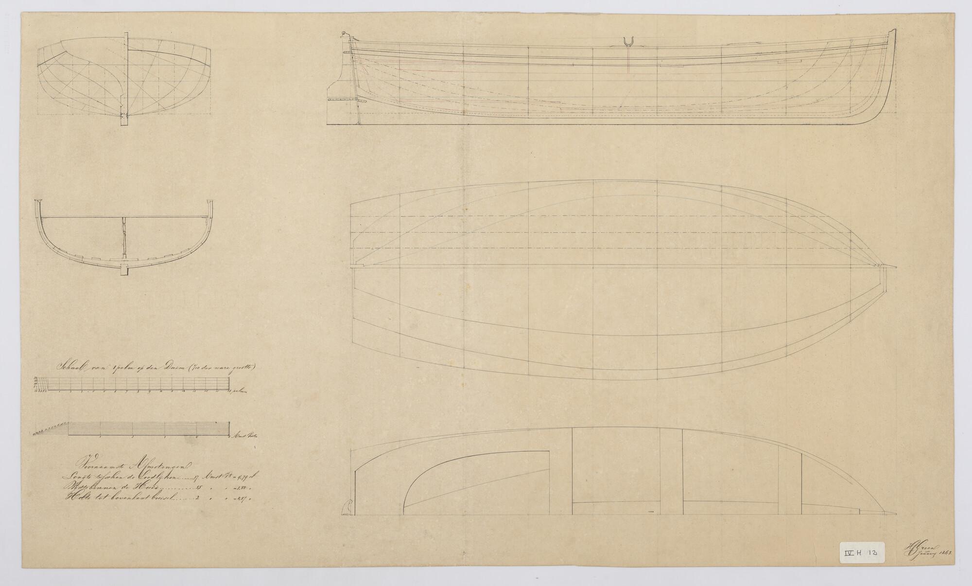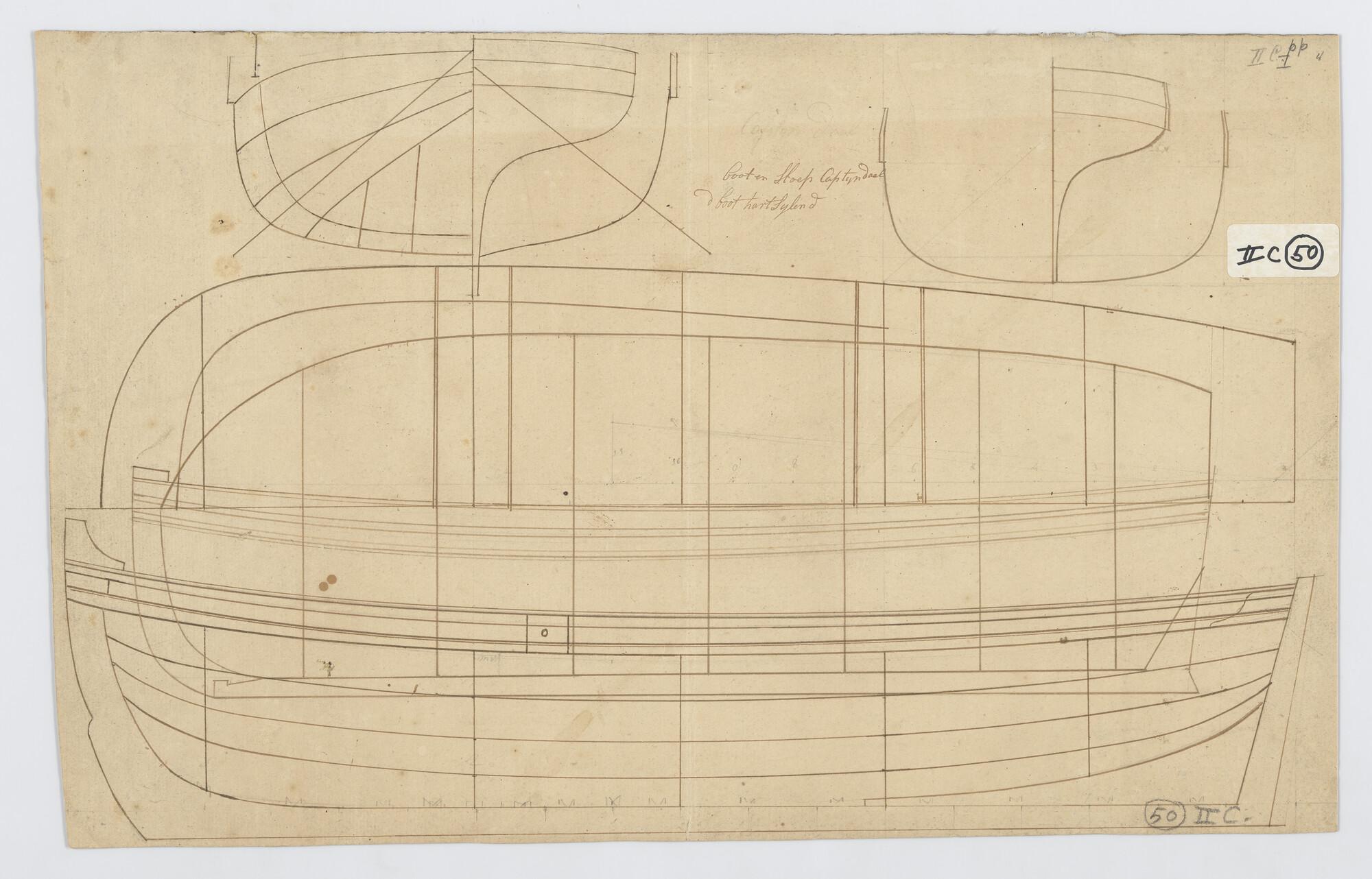 Lijnenplan van een sloep en boot