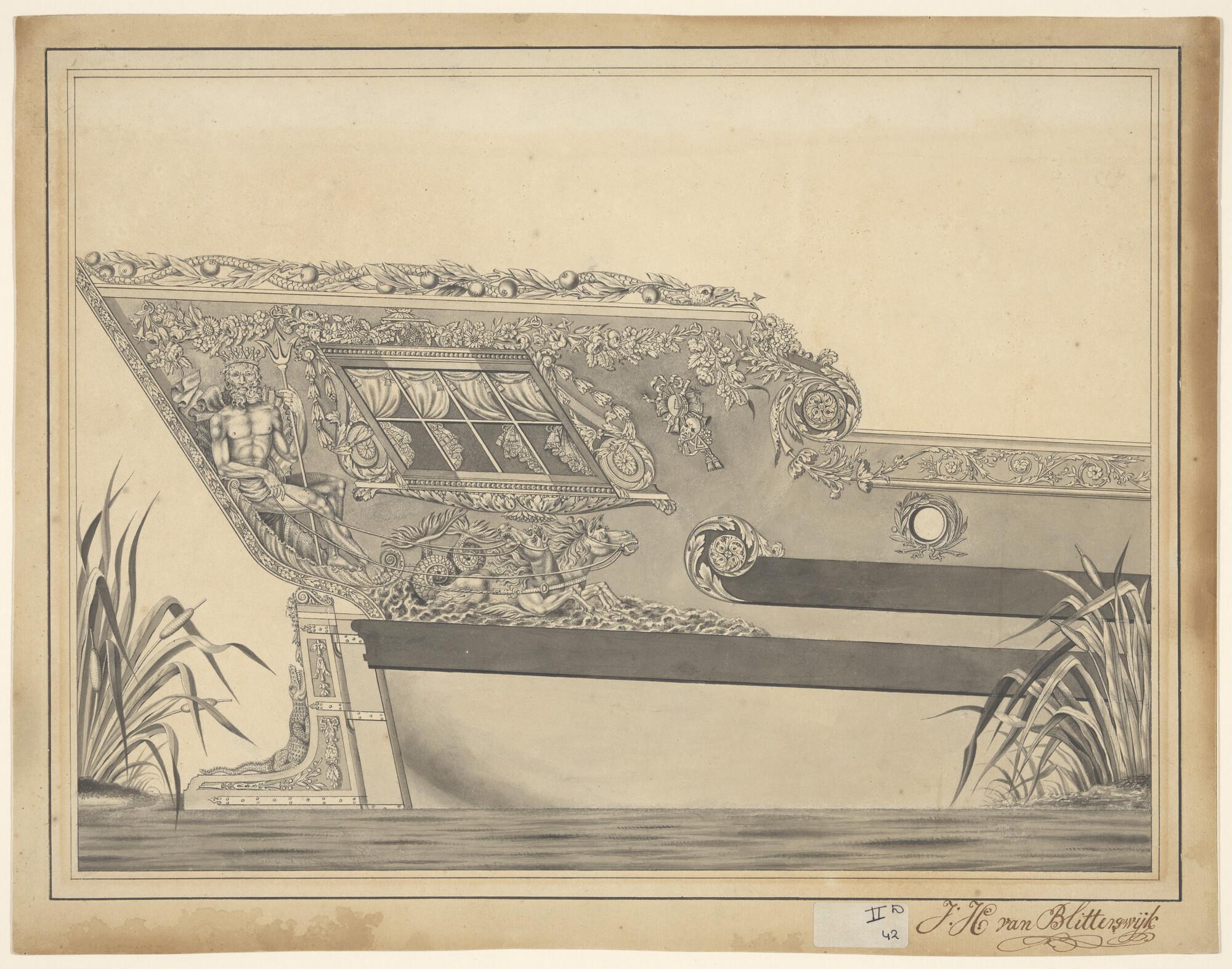 Spiegelversiering van een oorlogsschip