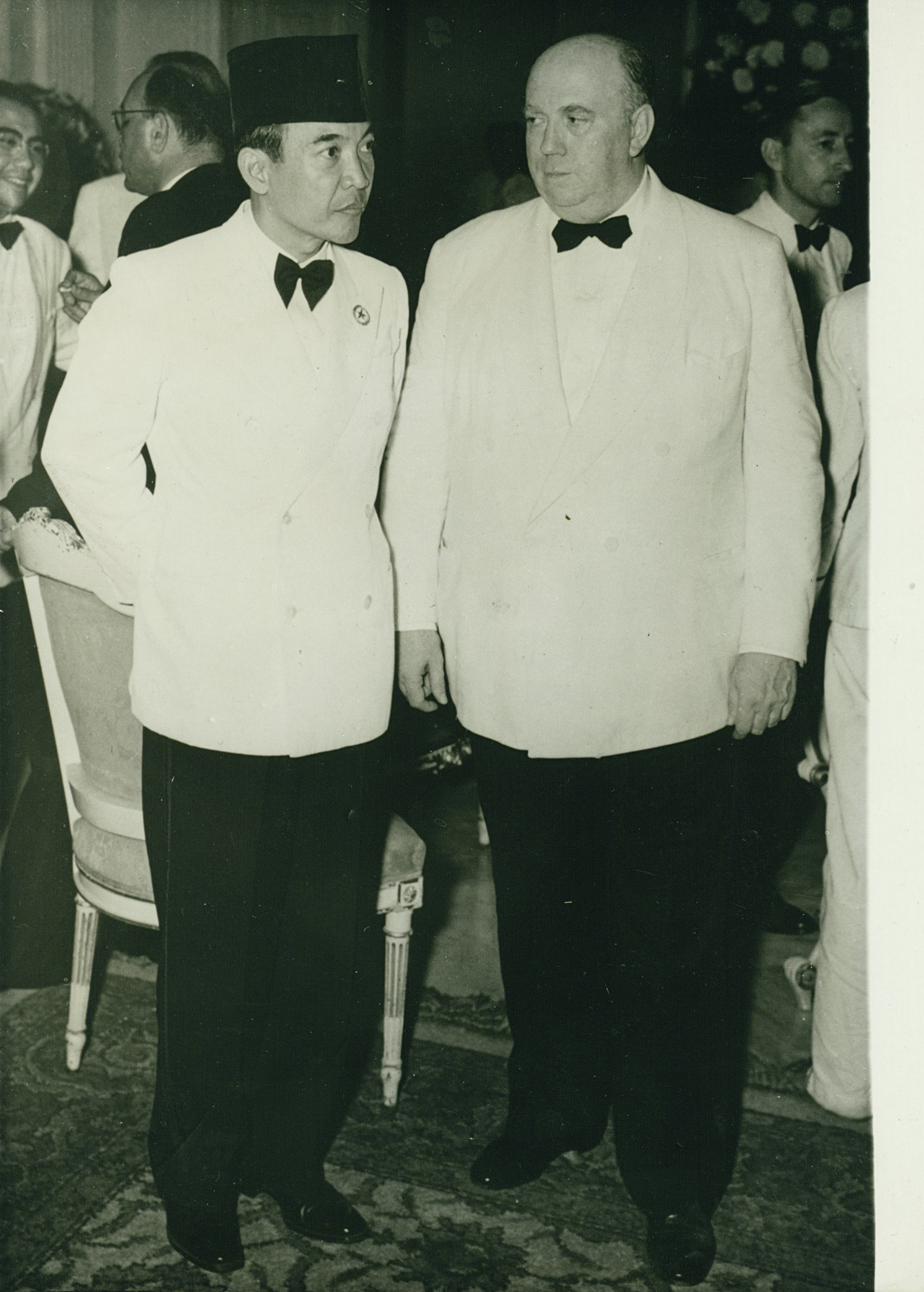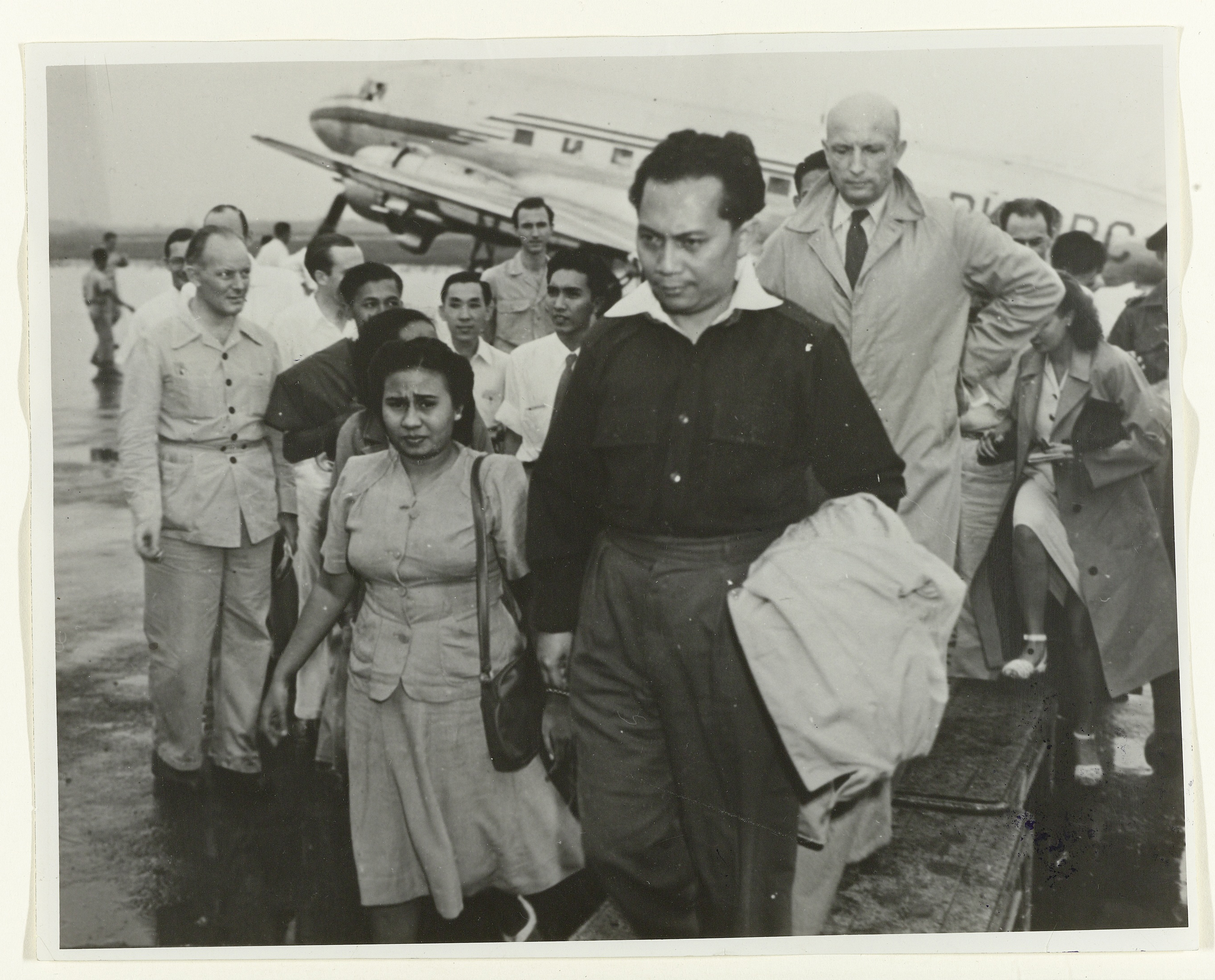 Soekarno en zijn vrouw Fatmawati poserend voor de pe...