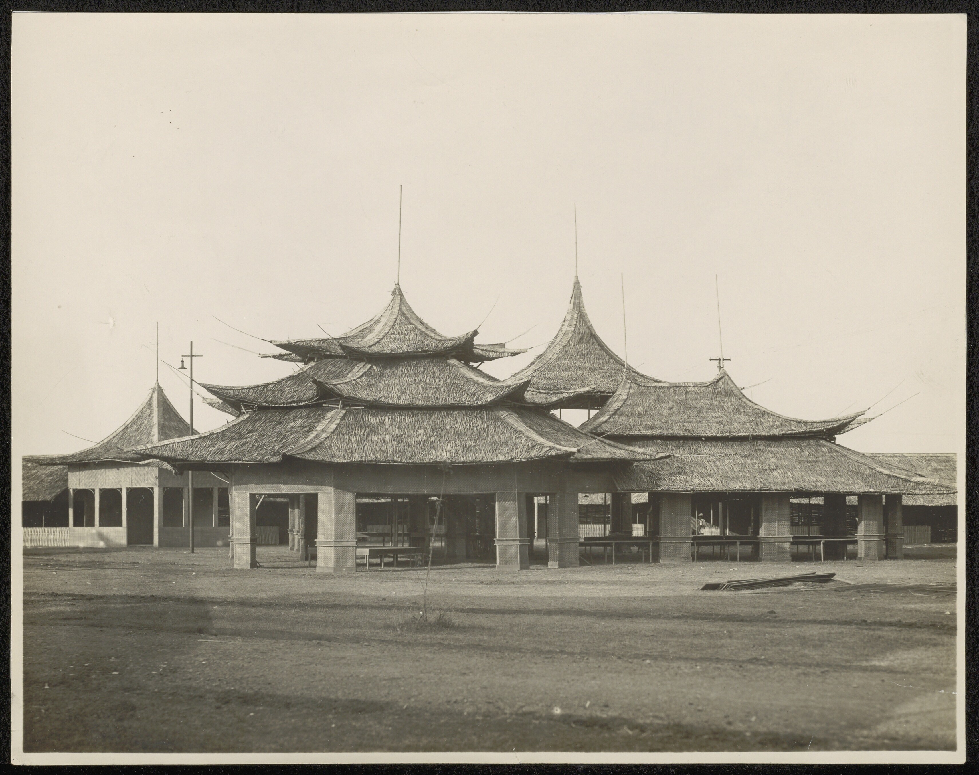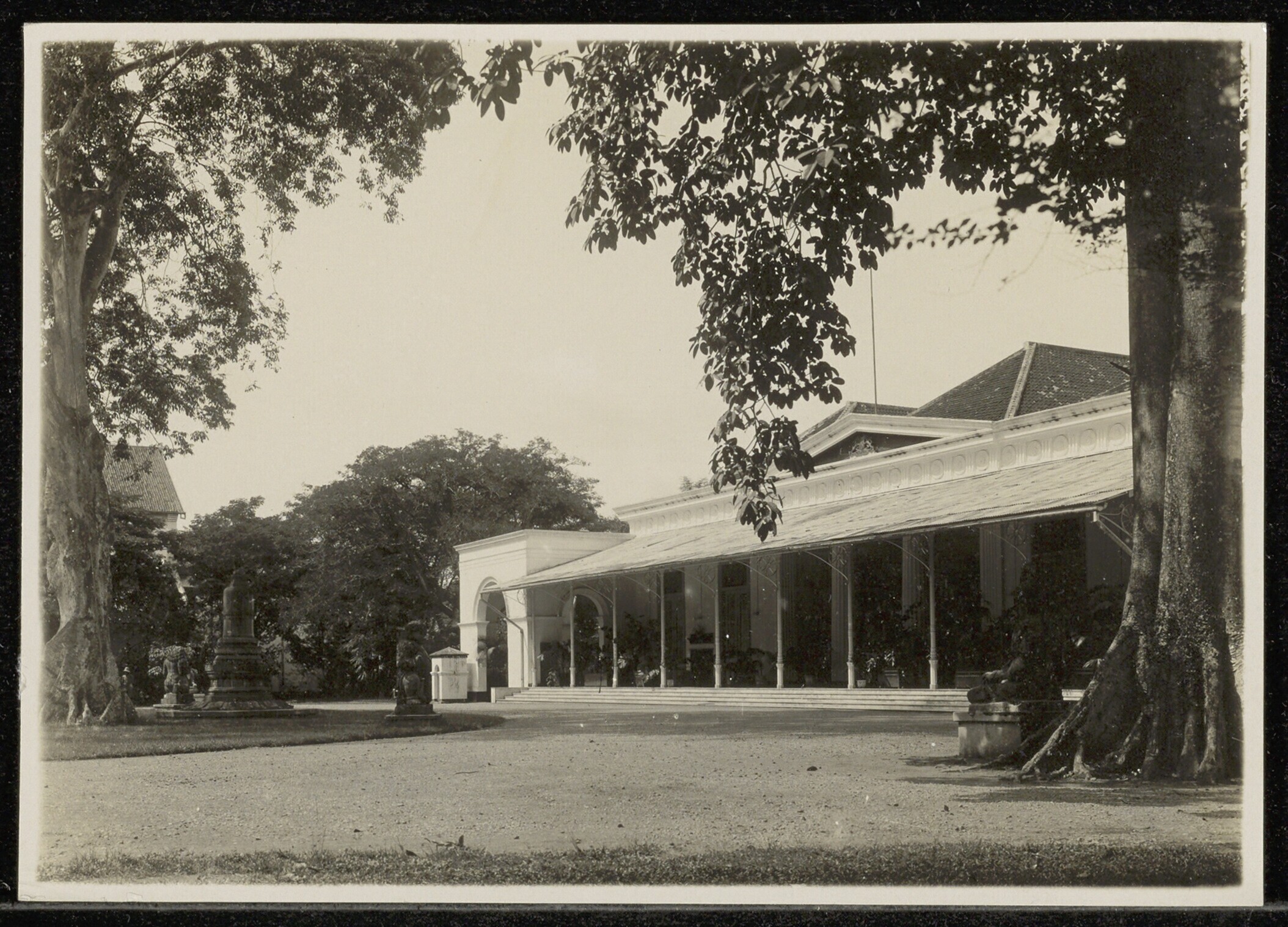 Gezicht over de Pasar Gambir op het Koningsplein in ...