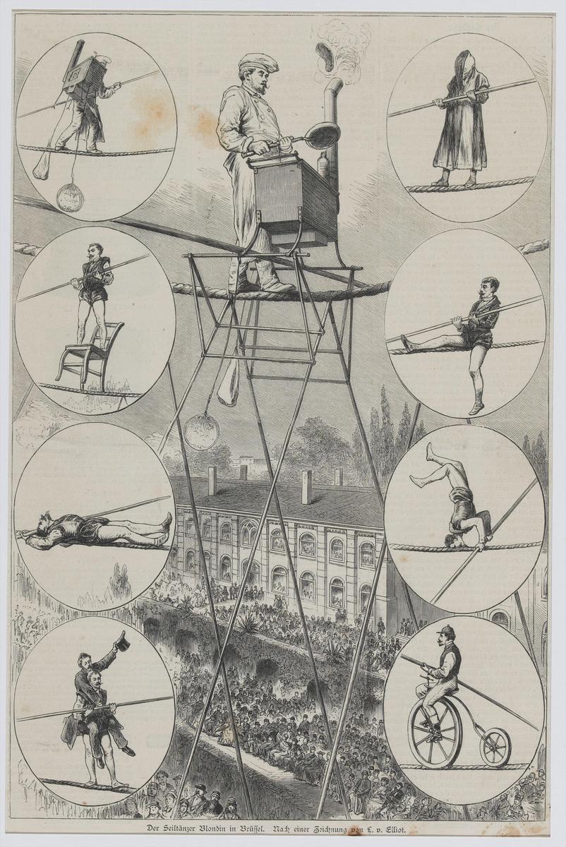 Koorddanser Blondin met fornuisje op het slappe koord