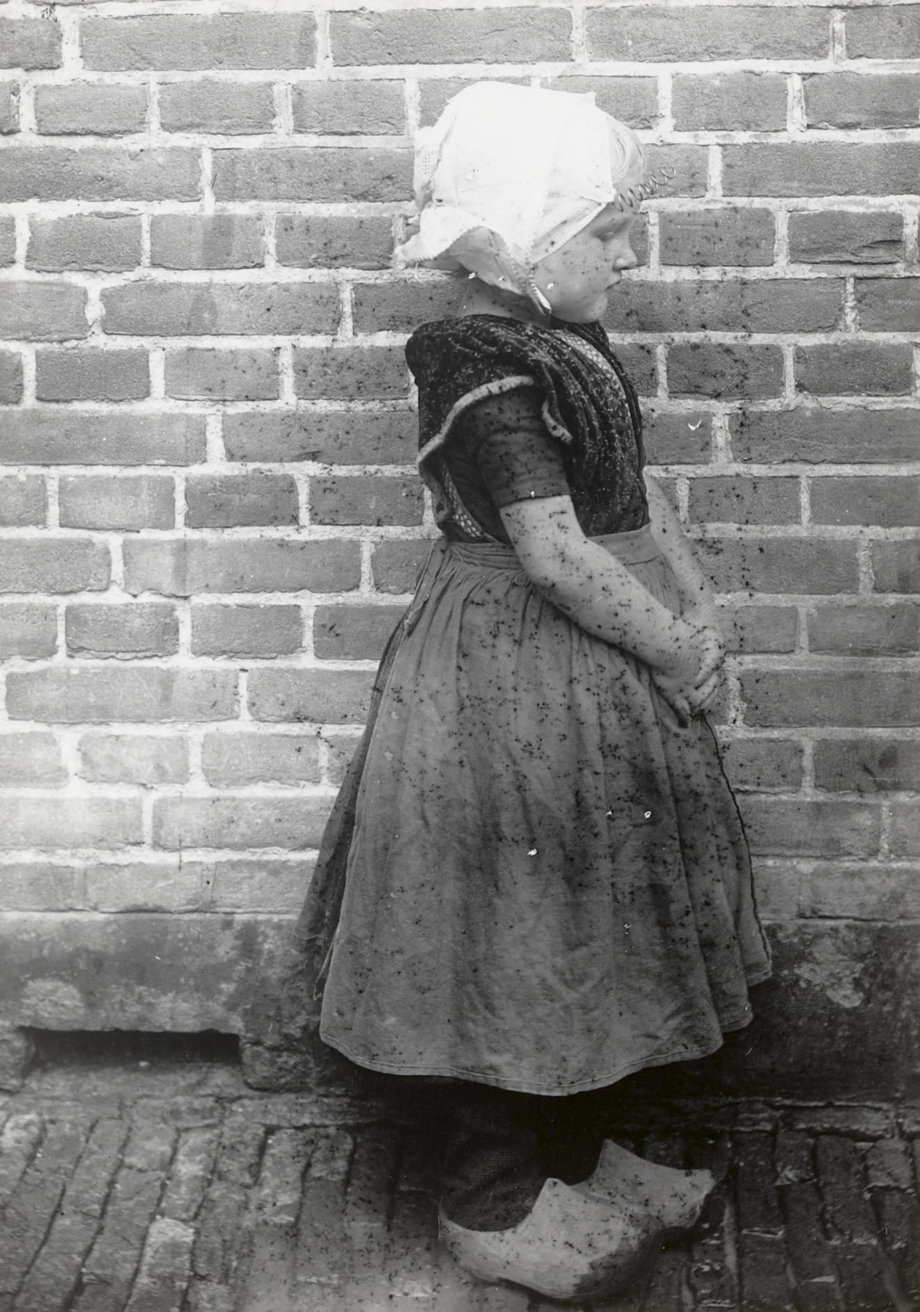 Meisje in Arnemuider streekdracht, 1913–1916 (zwart-...