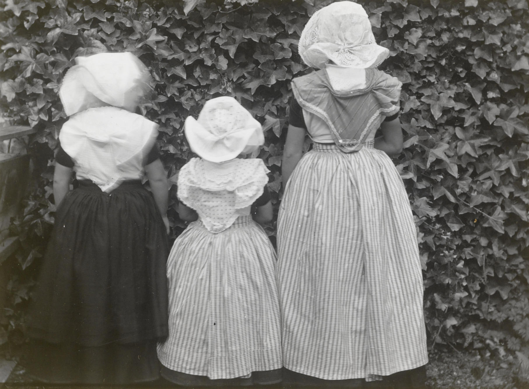 Drie meisjes in Arnemuider streekdracht, 1913–1916 (...