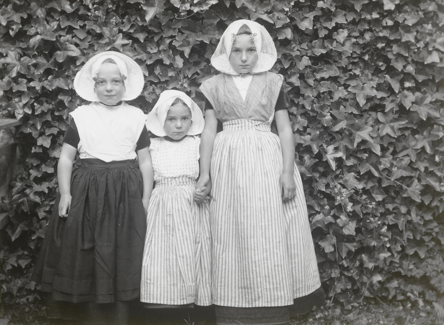 Drie zusjes in Arnemuider streekdracht, 1913–1916 (z...