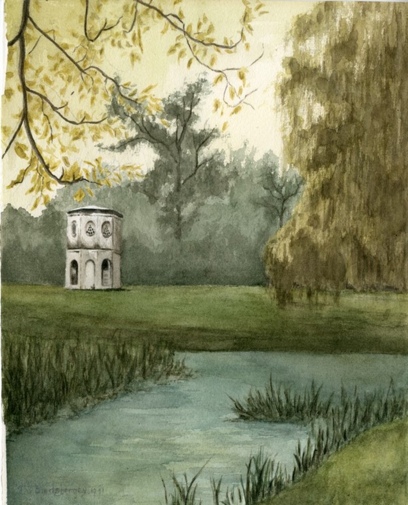 Aquarel voorstellende de duiventoren van kasteel Hal...