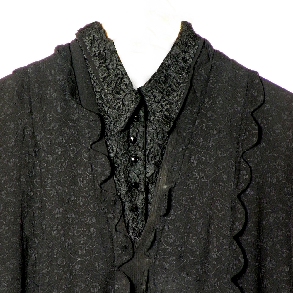 Jak en rok van zwarte stof met een werkje erin