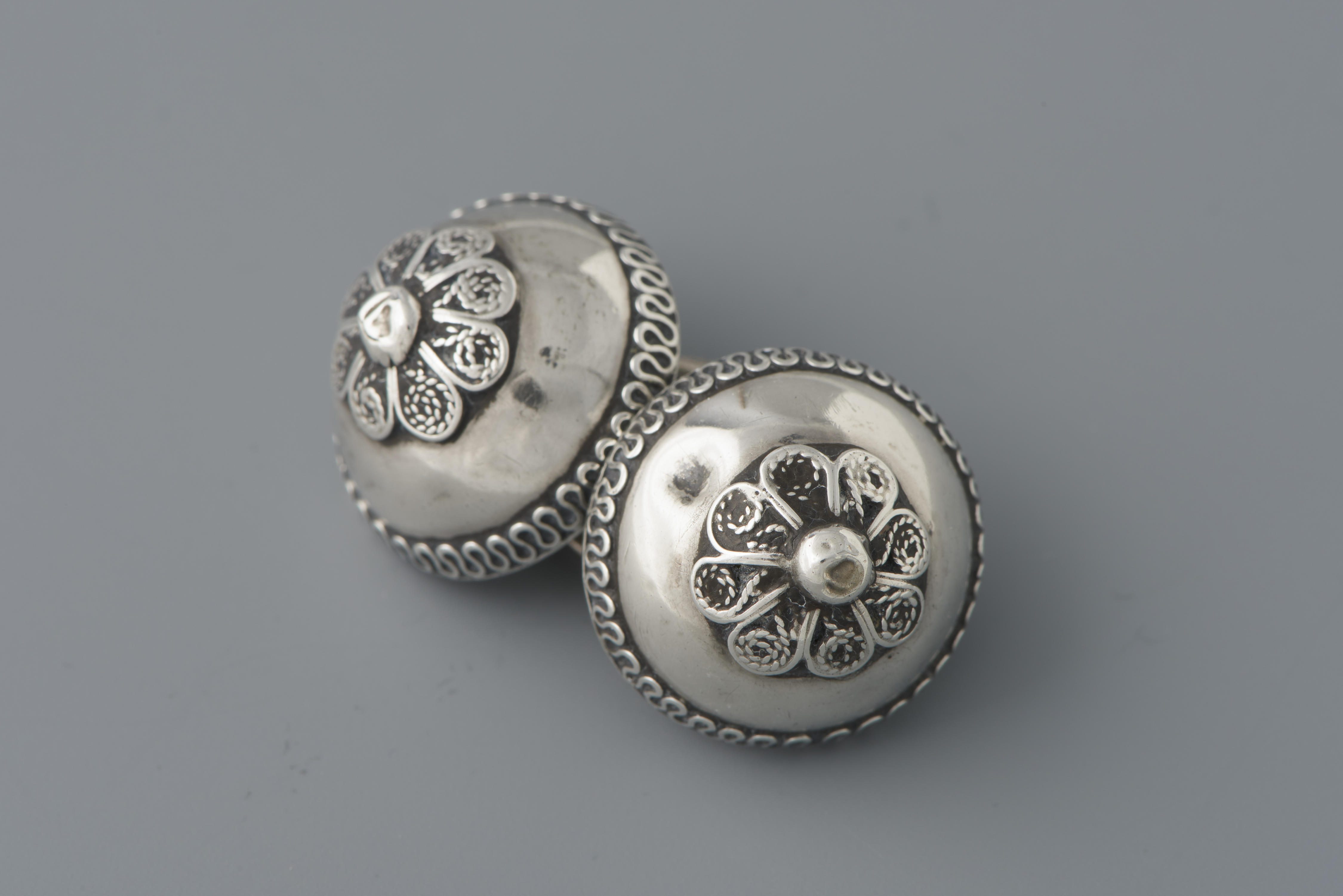 Paar zilveren keelknopen, Marken, circa 1875