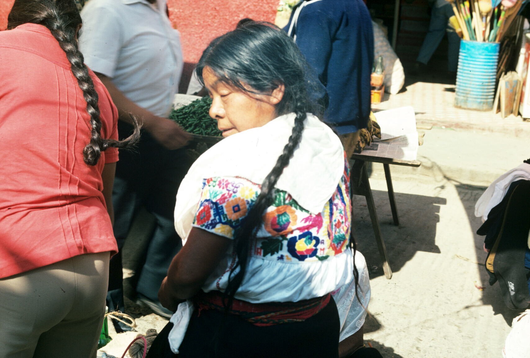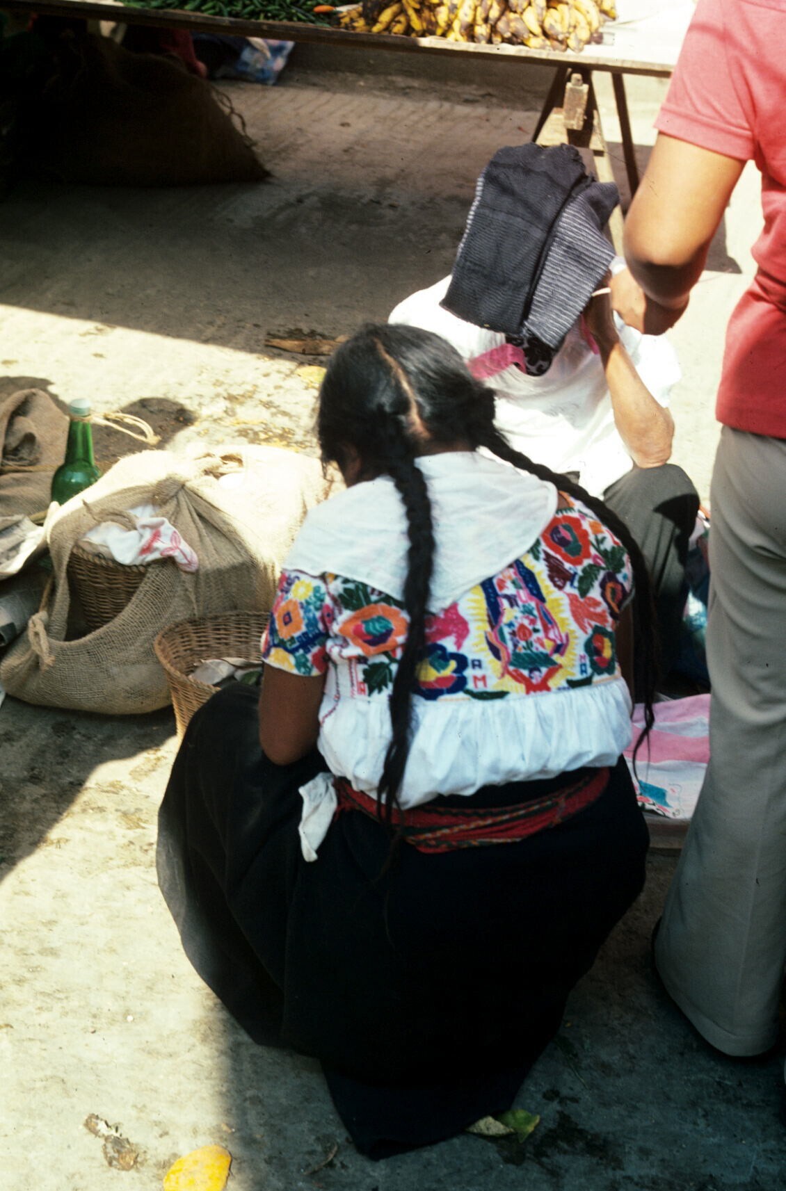 marktkoopvrouw met "blusa", wikkelrok en "faja" (cei...