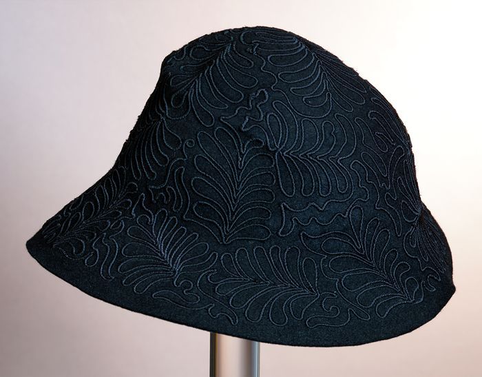 Zwarte vilten cloche met soutache in palmetachtige m...