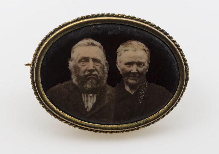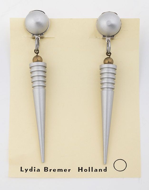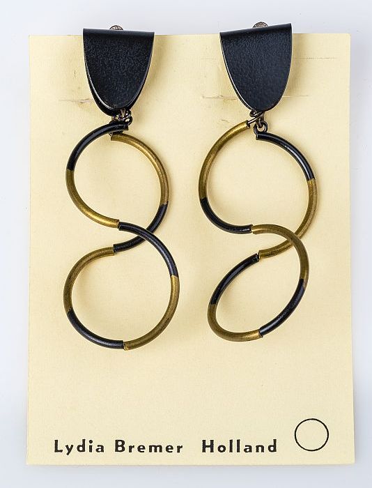 Paar messing oorhangers, waarbij van zwart clip gede...