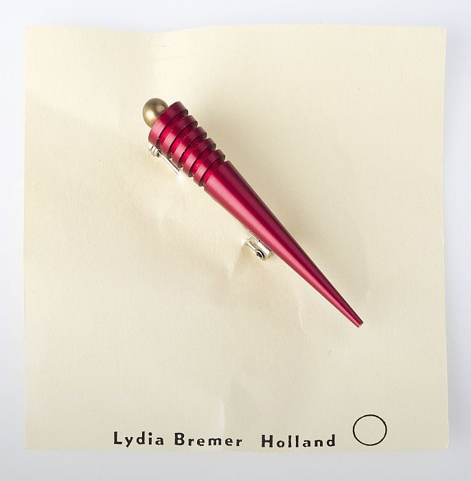 Stalen hoedenspeld, afgezet met messing kraal en roo...