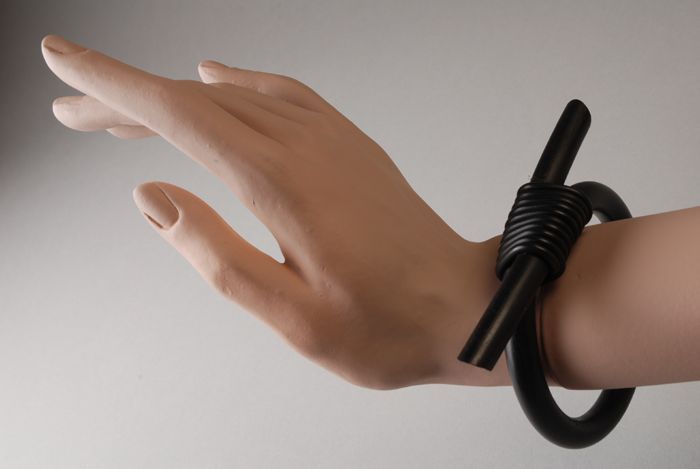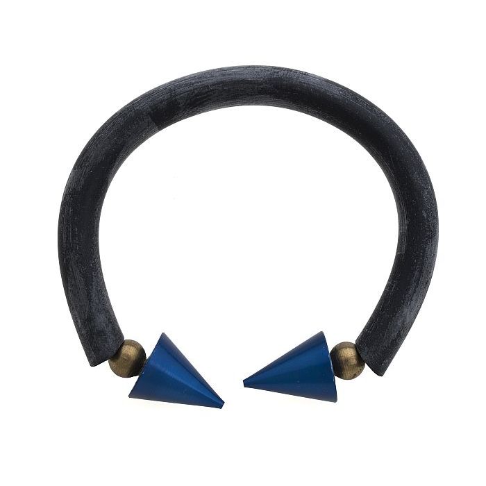 Armband van zwart rubber met aluminium uiteinden, blauw