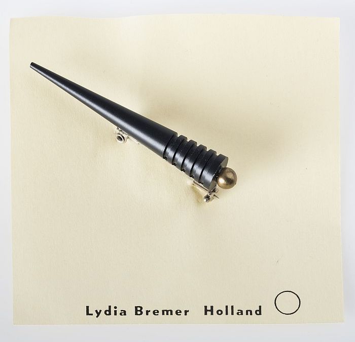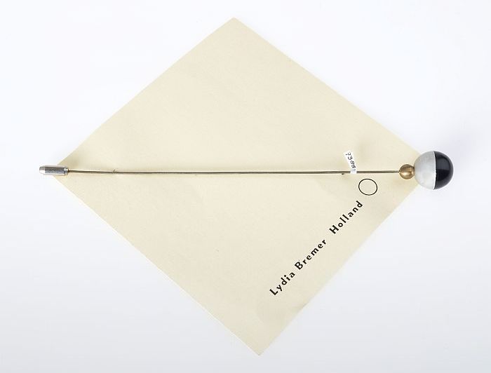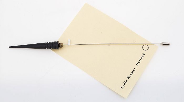 Stalen hoedenspeld, afgezet met messing kraal en zwa...