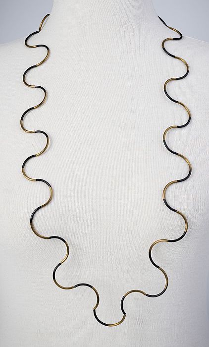 Collier van zwart rubber met aluminium uiteinden, blauw