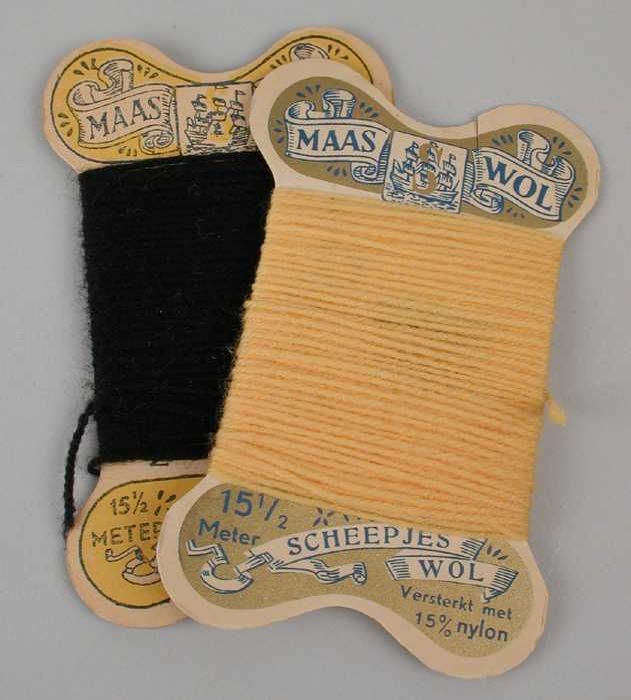 Kartonnen kaart omwikkeld met zwart maasgaren of sto...