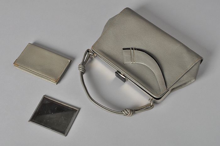 Grijs imitatieleren damestasje met zilverkleurige be...
