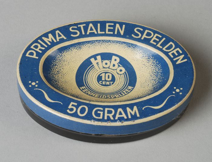 Ovaal zwart, wit en blauw blik, "HOBO, prima stalen ...