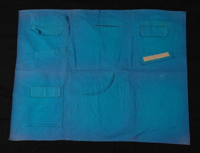 Naaiproef, schaalmodel van een jas van blauw flanel ...