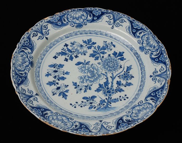 Grote schotel met blauwe bloementakken, Delfts aarde...