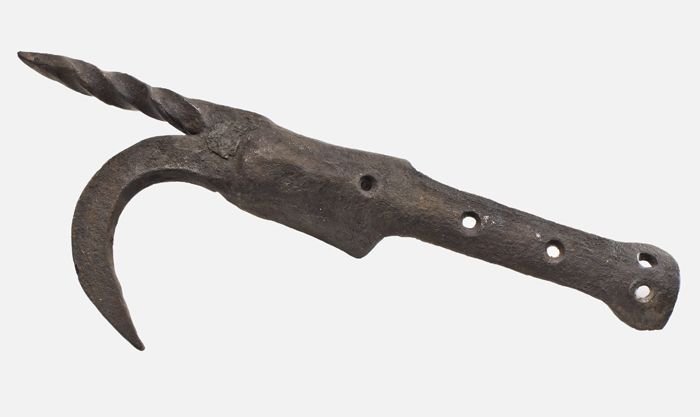 Stalen hoedenspeld, afgezet met messing kraal en gro...