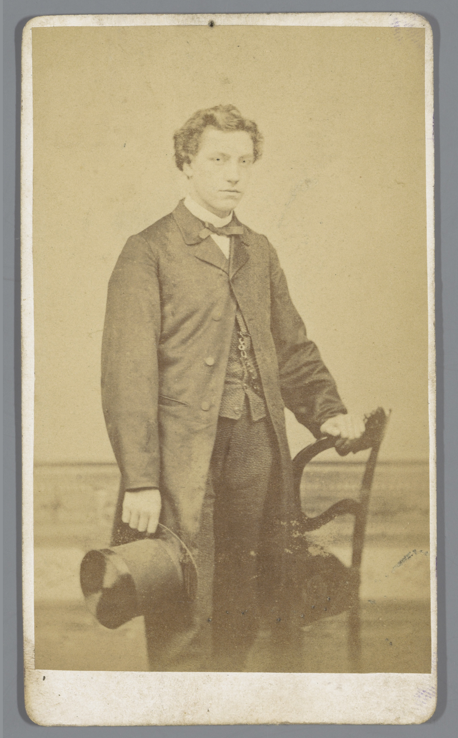 Portret van een onbekende jongeman bij een fauteuil
