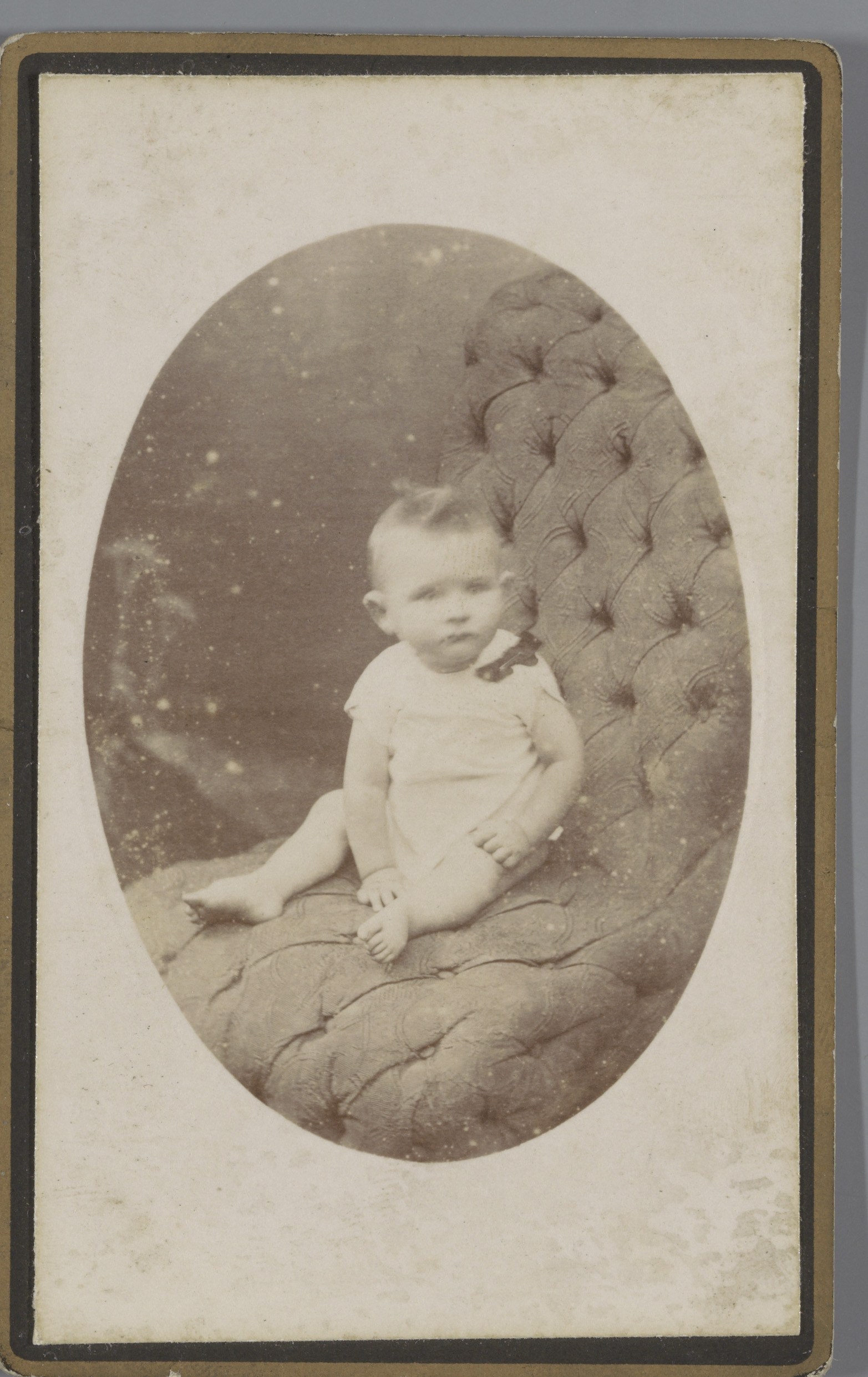 Portret van een onbekende baby op een fauteuil