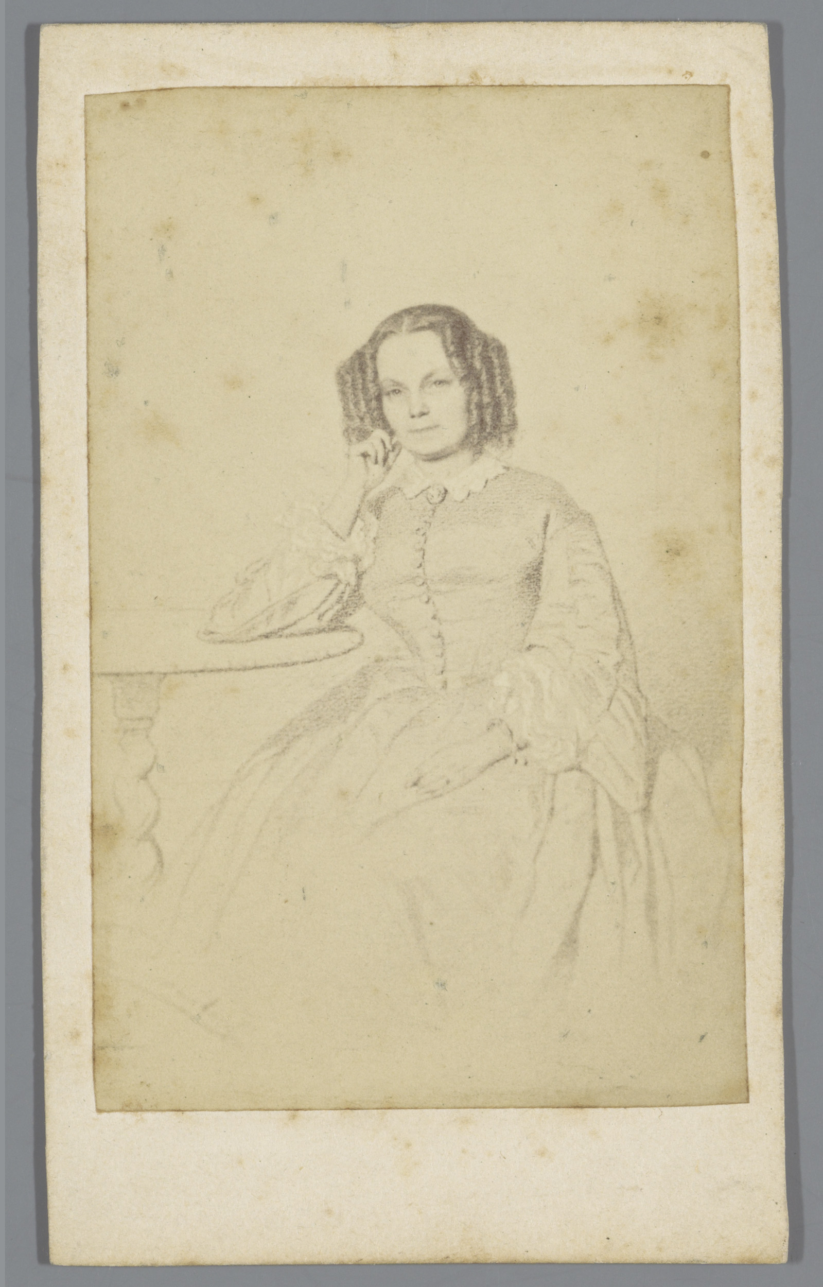 Portret van een onbekende vrouw bij een tafel