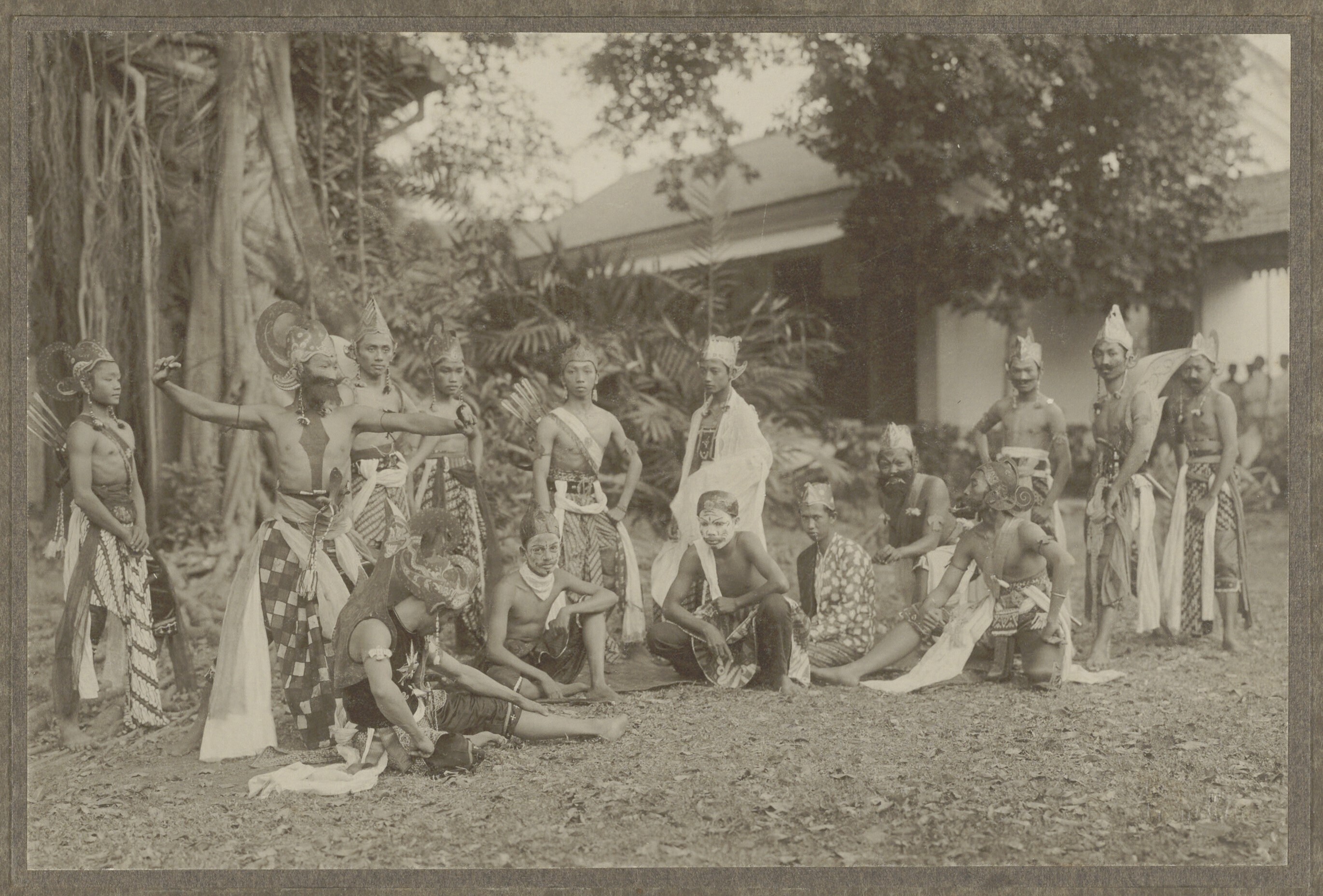 Portret van een groep wajang wong spelers in de buit...