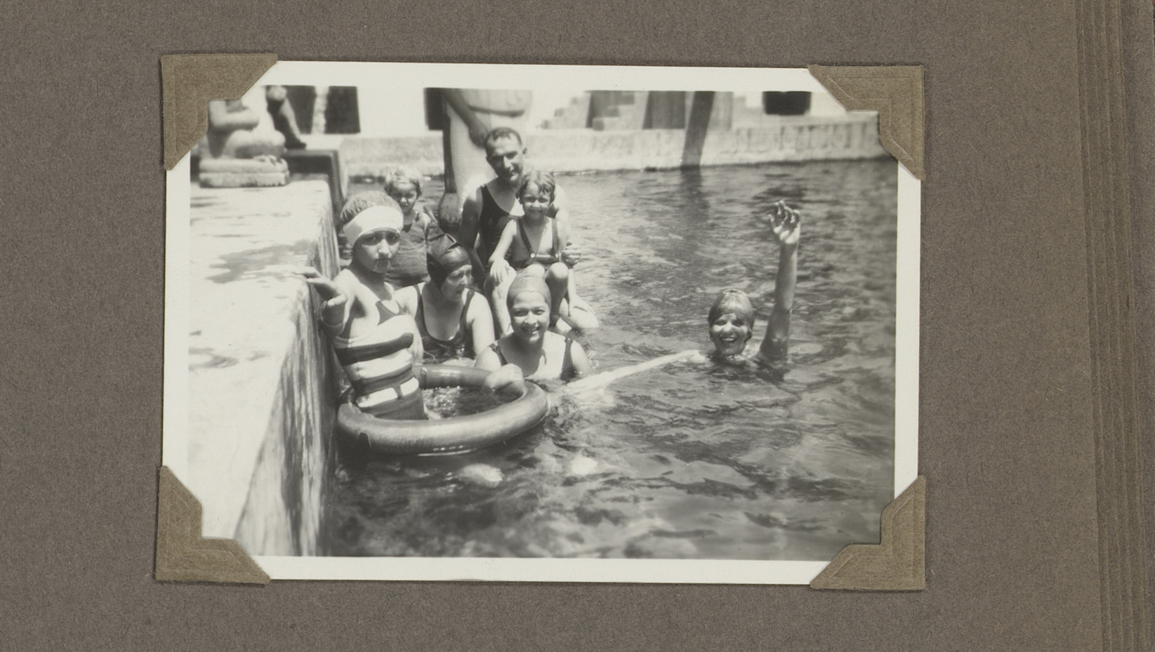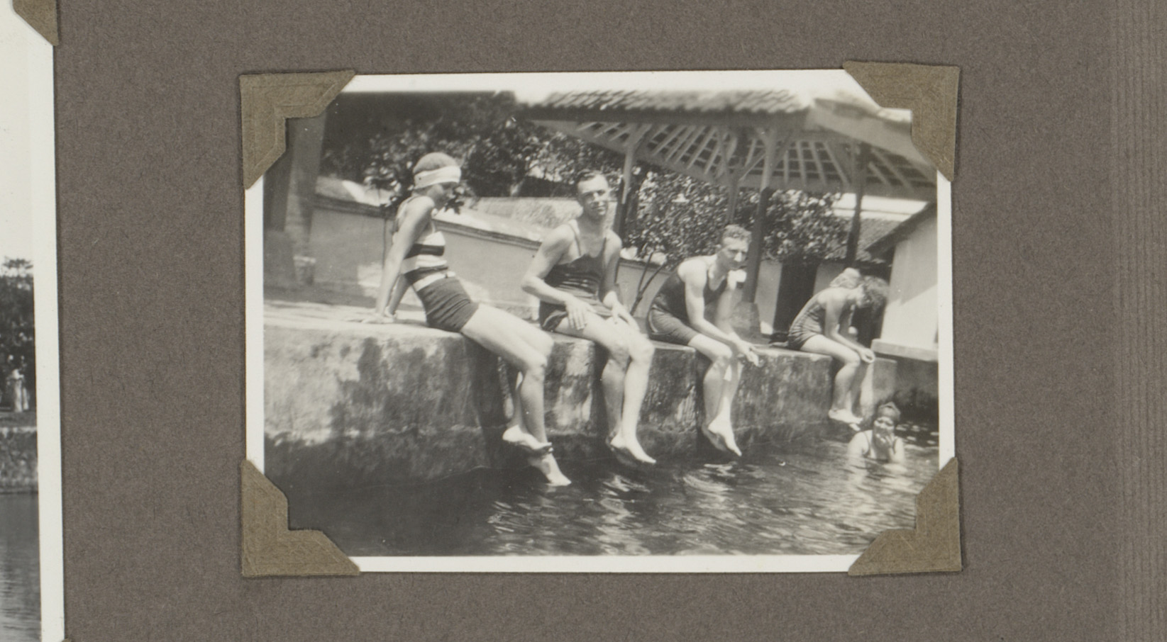 Dootje van Zijll de Jong en anderen in zwemkleding
