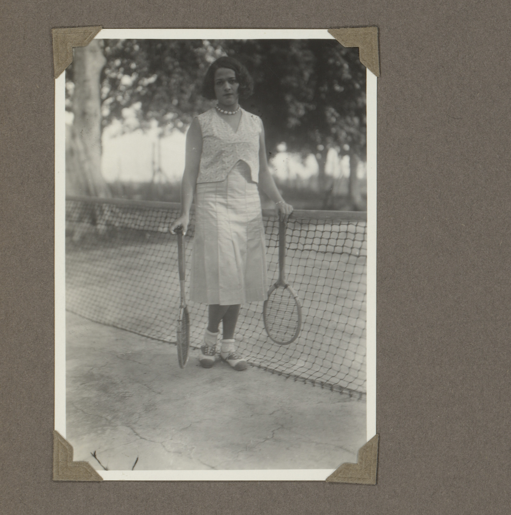 Portret van Wilhelmina van Zijll de Jong op een tenn...