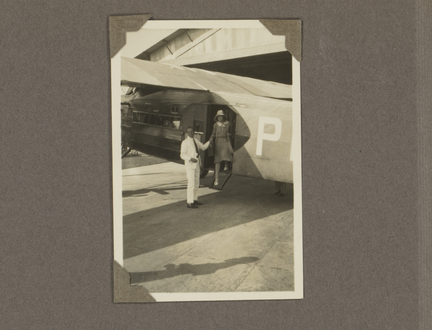 Vrouw stapt uit een vliegtuig op vliegveld Andir te ...