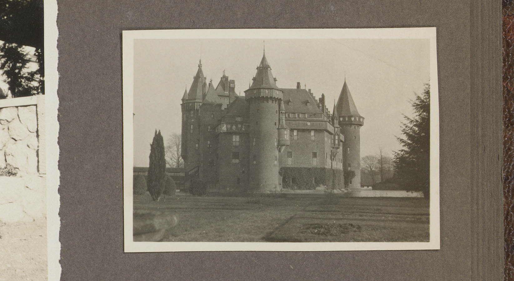 Wilhelmina en Dootje van Zijll de Jong met een onbek...