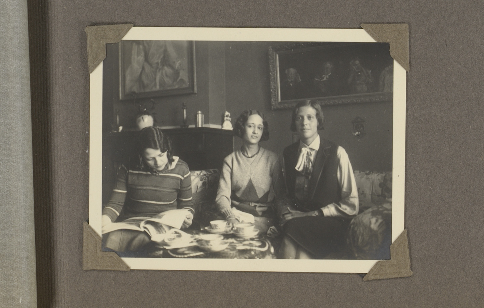 Wilhelmina en Dootje van Zijll de Jong met een ander...