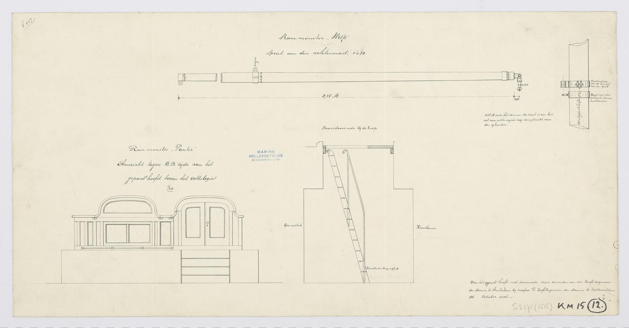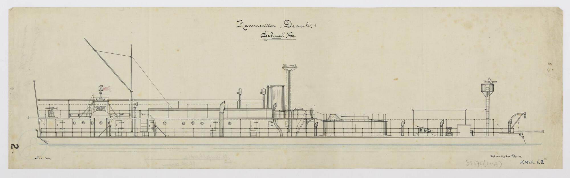 Langsdoorsnede boven de waterlijn van de rammonitor ...