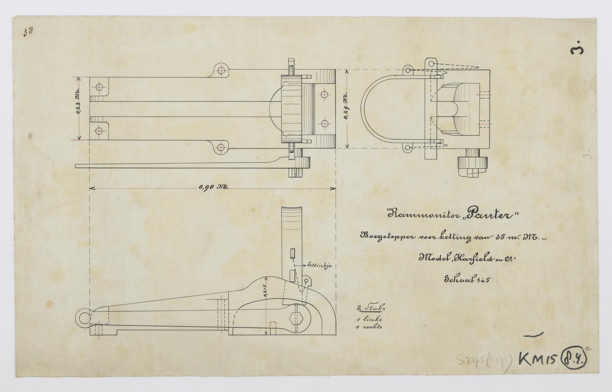 Diverse doorsneden van een boegstopper (kettingstopp...
