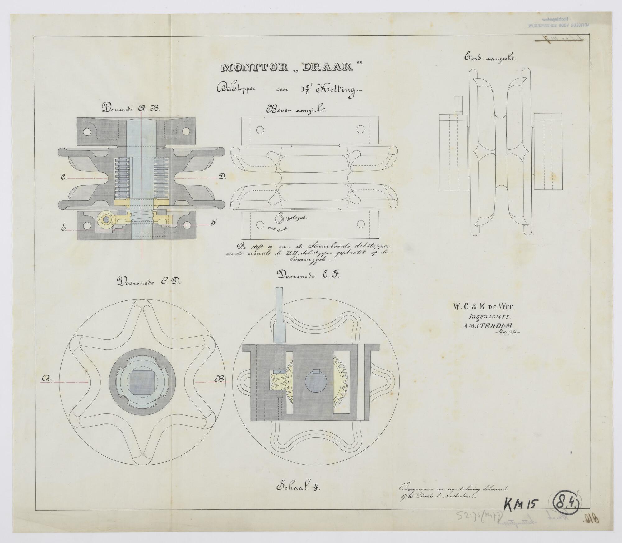 Diverse doorsneden en aanzichten van een dekstopper ...