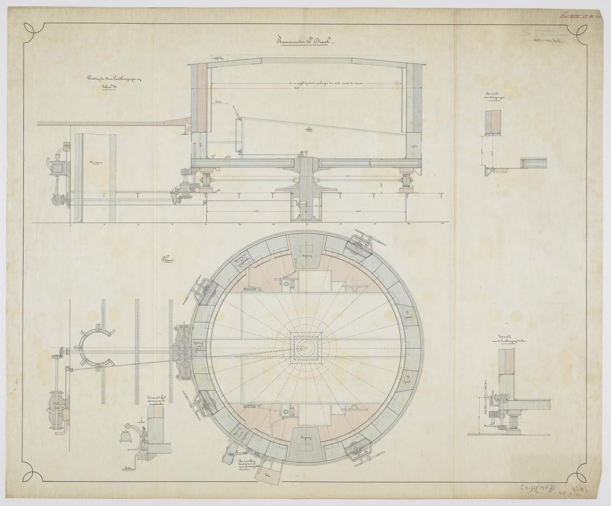 Bovenaanzicht en diverse doorsneden van de waterkeri...