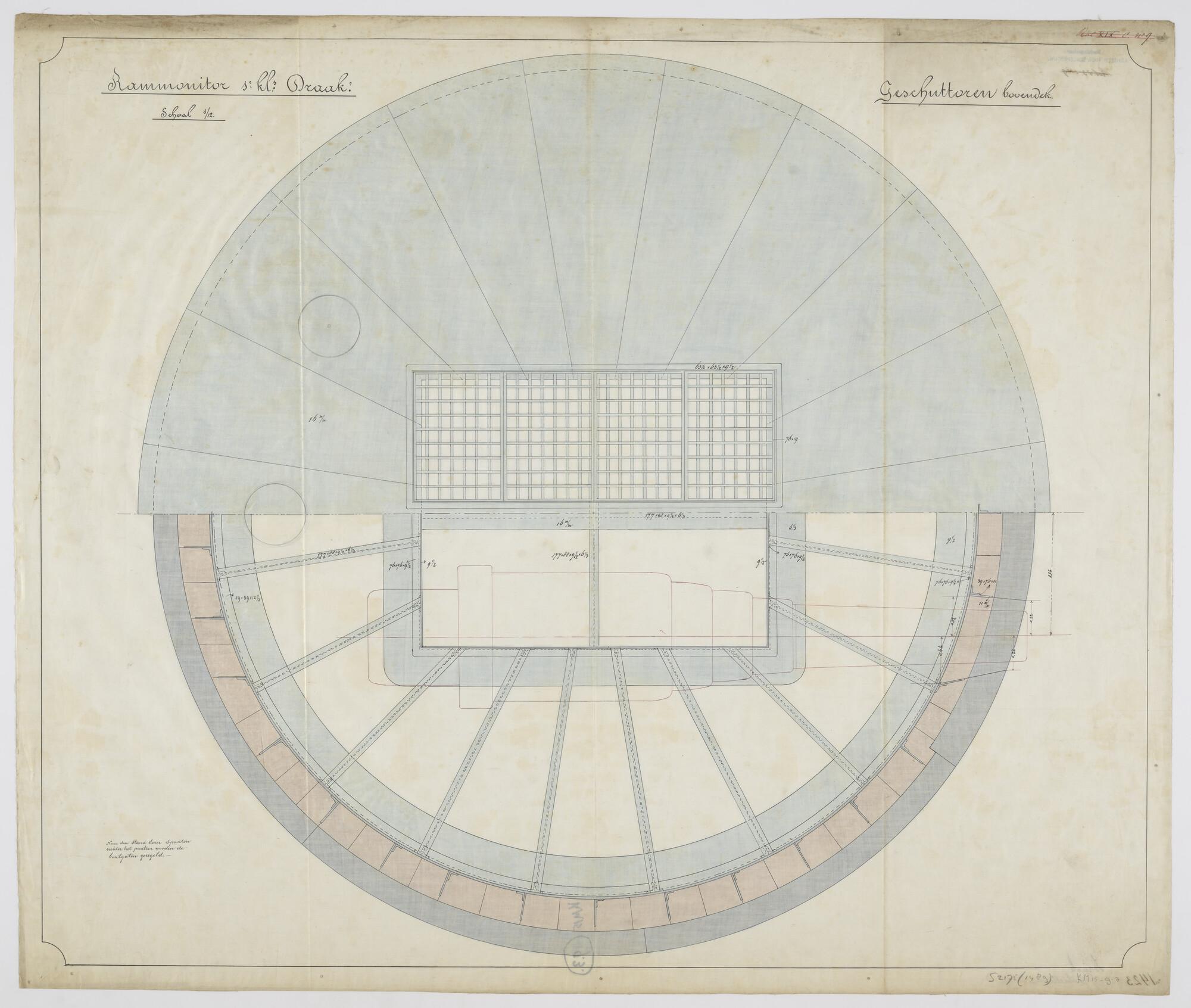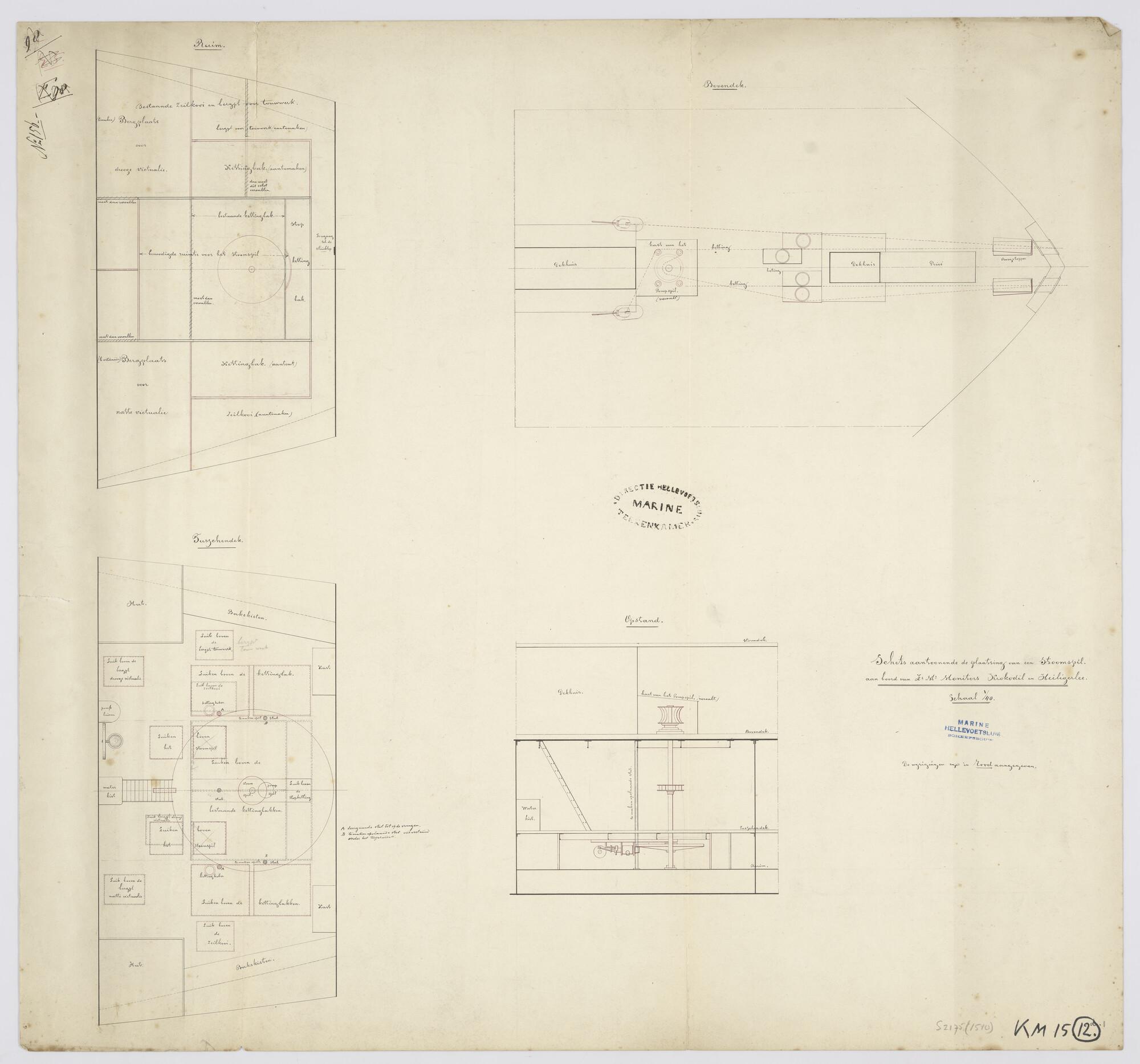 Horizontale dwarsdoorsnede van het geschutdek in de ...