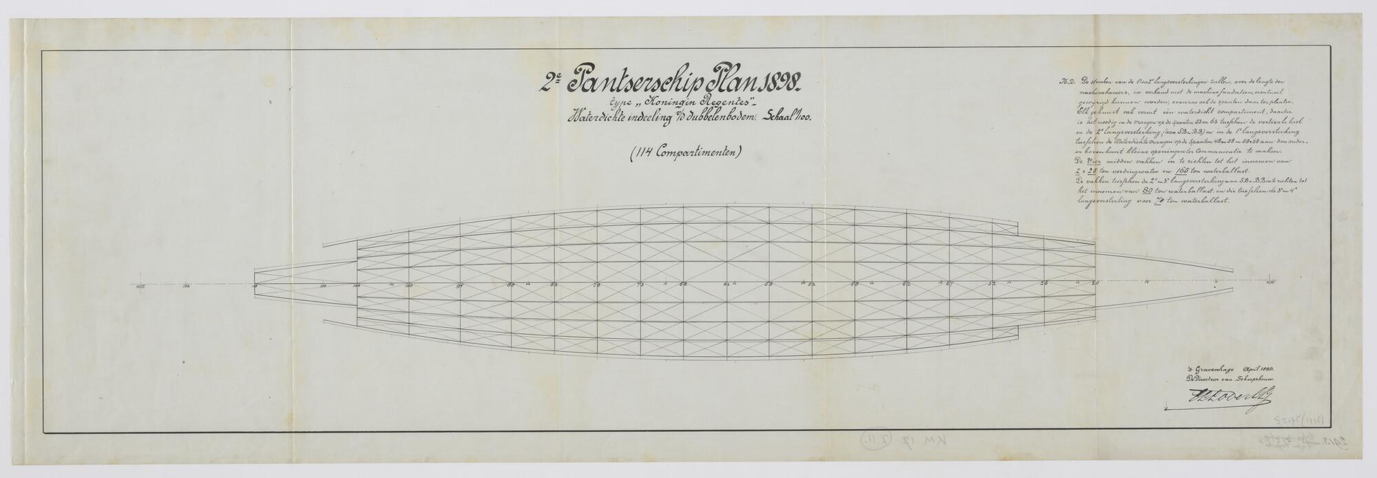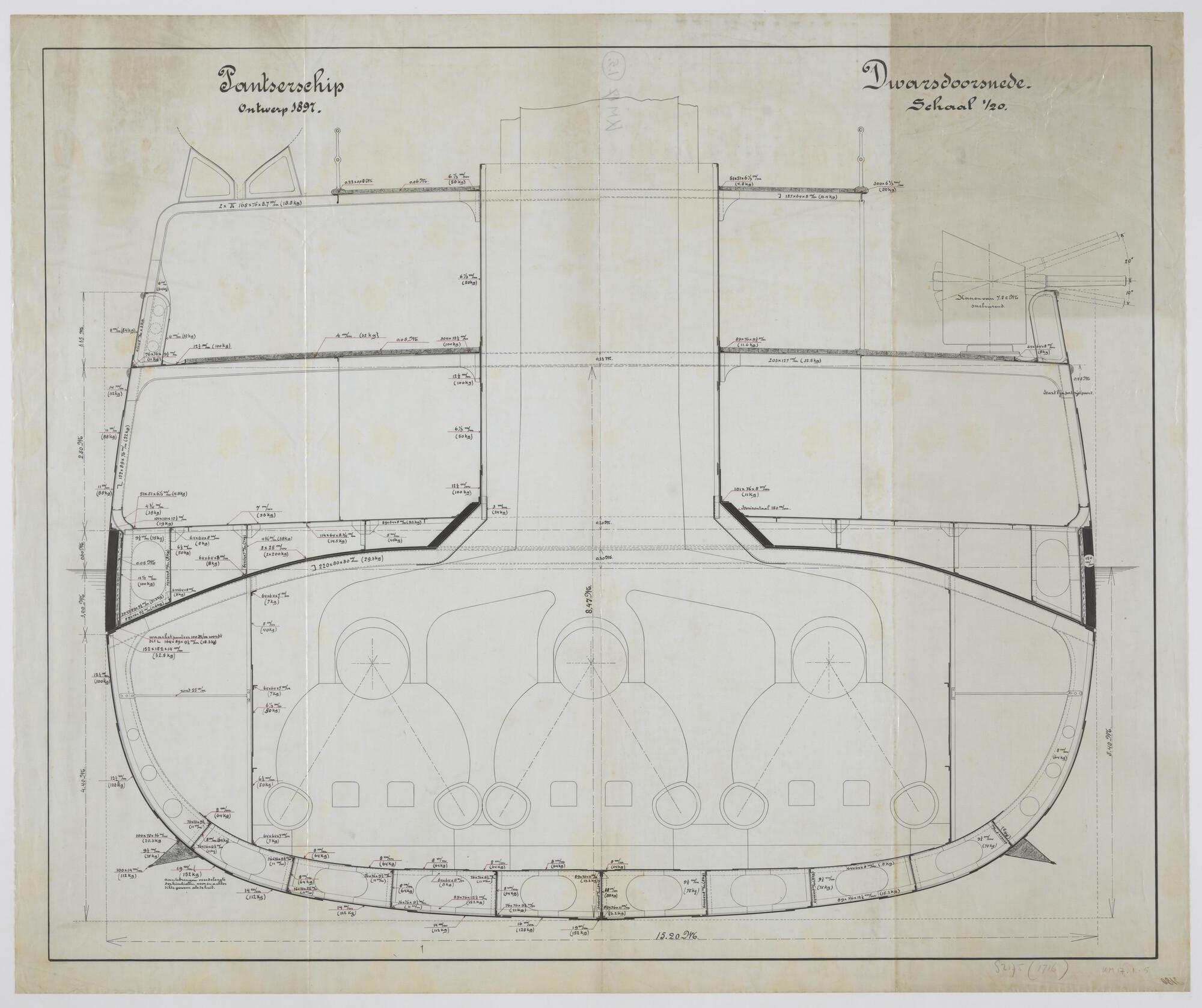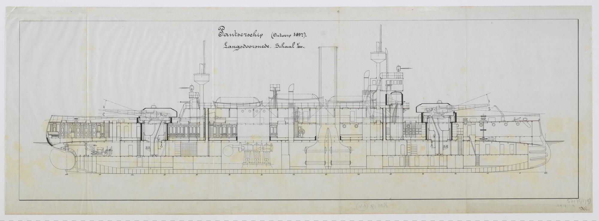 Langsdoorsnede van het 2de pantserschip plan 1898 ty...