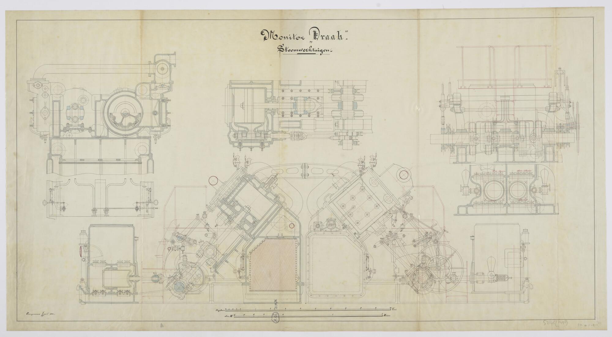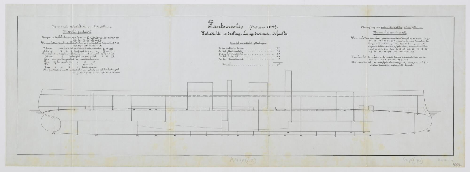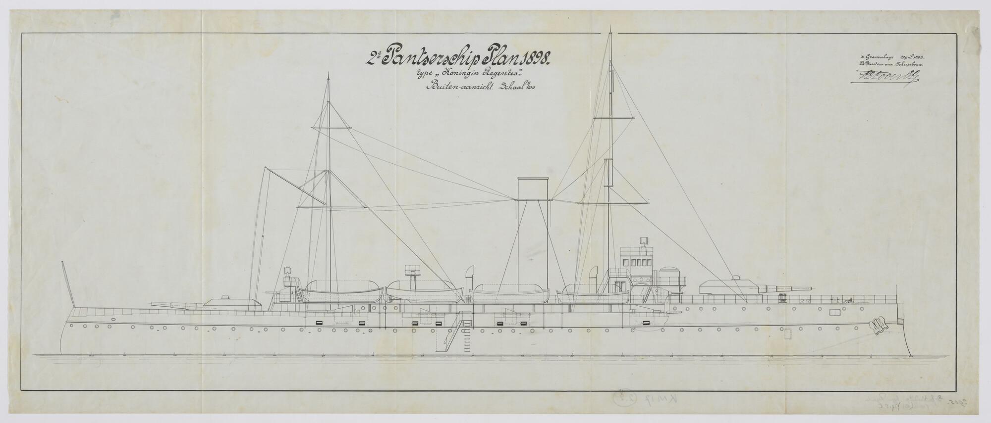 Langsdoorsnede van het 2de pantserschip plan 1898 ty...