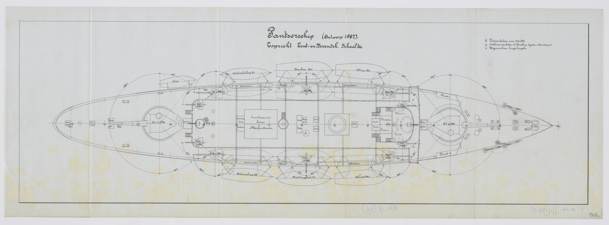 Bovenaanzicht van het bovendek van het tweede pantse...