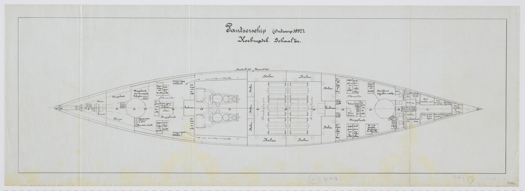 Bovenaanzicht van het cellendek van het 2de pantsers...