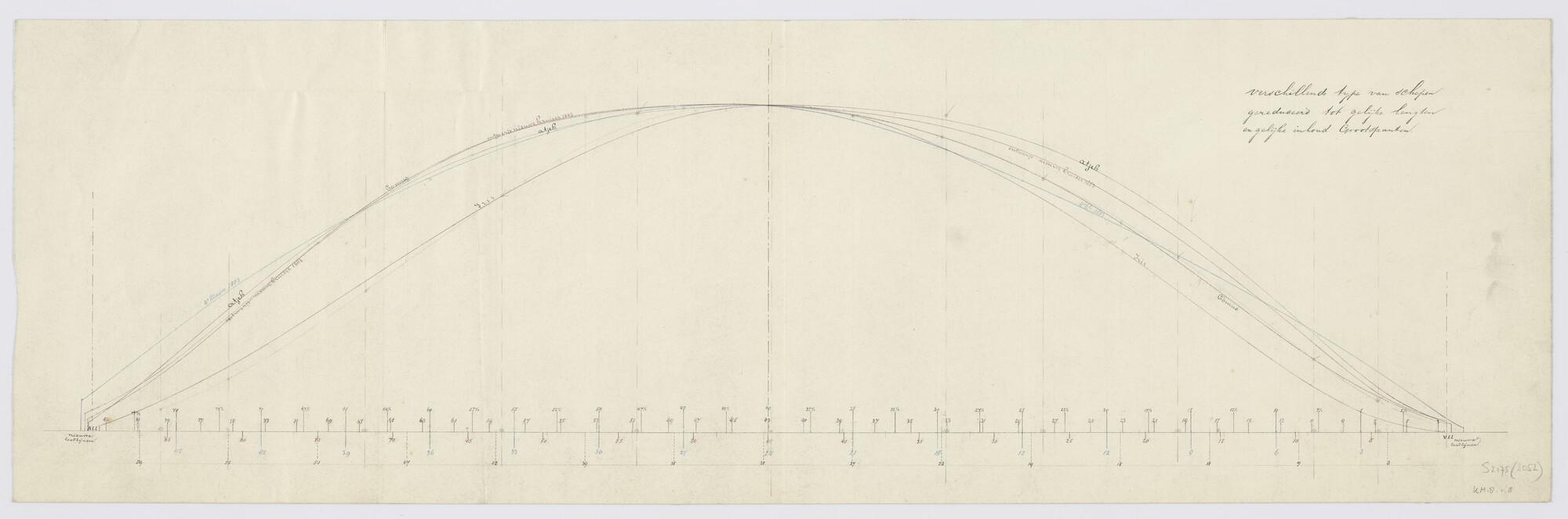 Lijnentekening en spantenraam van een ontwerp voor e...