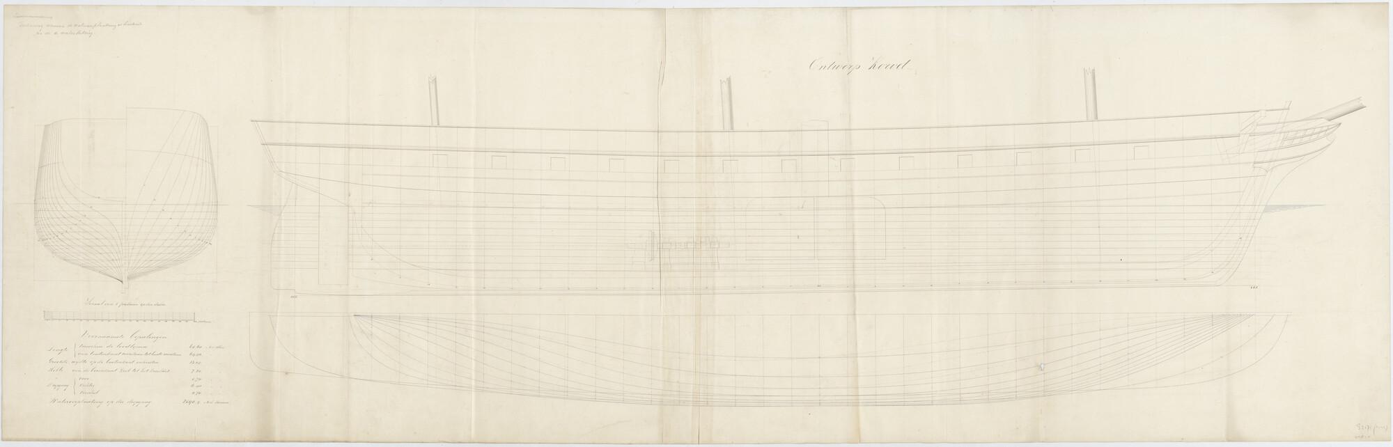 Lijnenplan en spantenraam van het 2de pantserschip p...