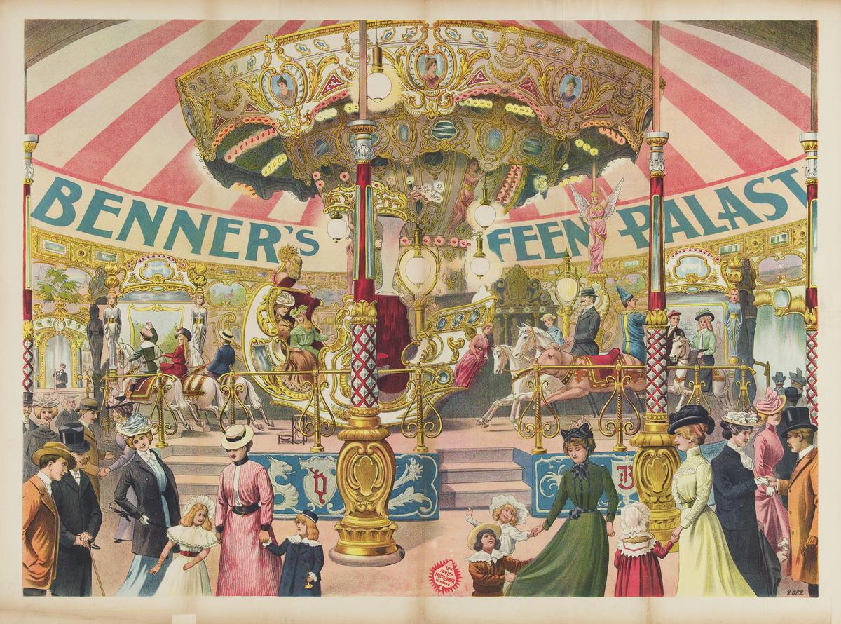 Aankomst van het circus vanaf station, rijtuigen, di...