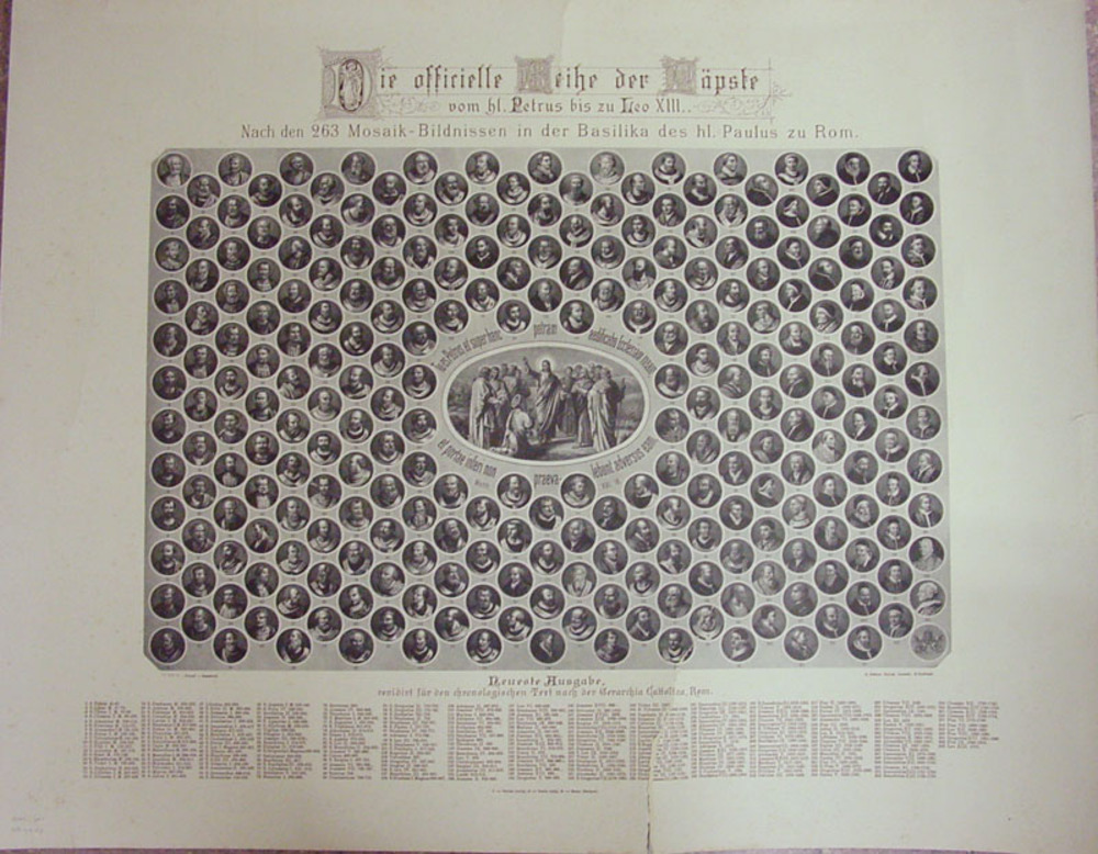 Prent van alle pausen op karton steendruk naar mozaï...