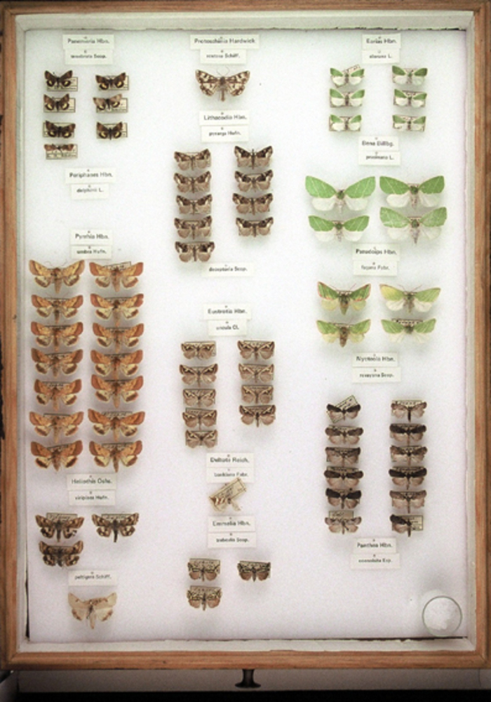 Vlinderdoos 072 van 106 dozen van hout en glas met d...
