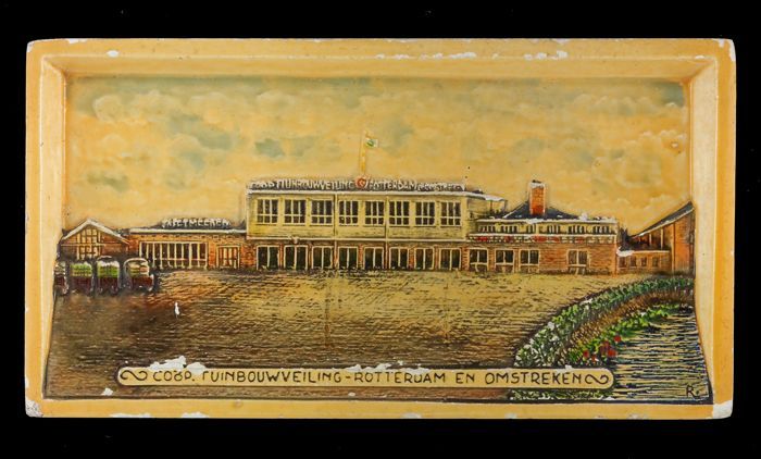 Rechthoekige veelkleurige plaquette, met in reliëf h...