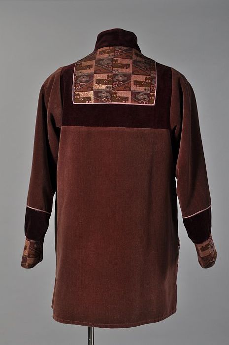 Jas van oud roze en donkerrood fluweel met roze-groe...